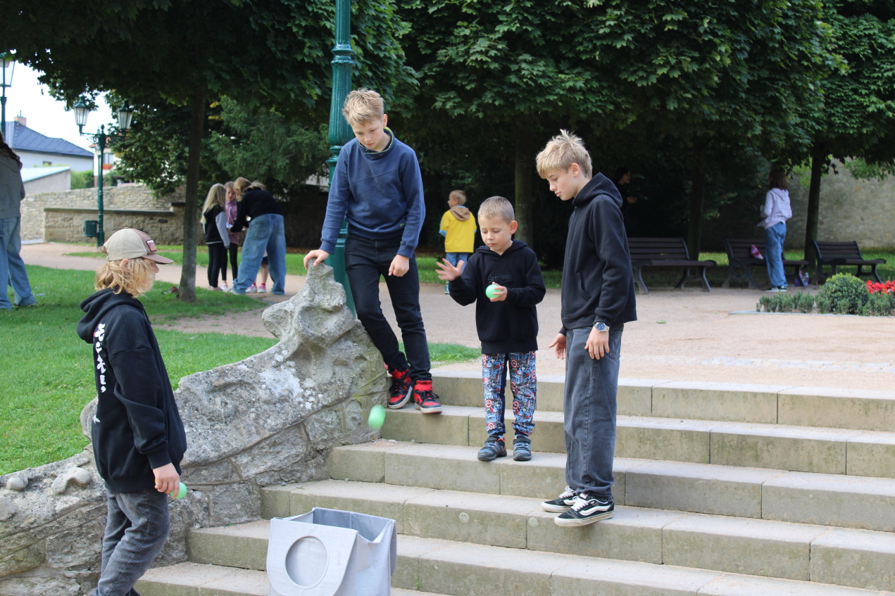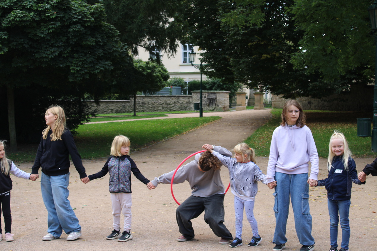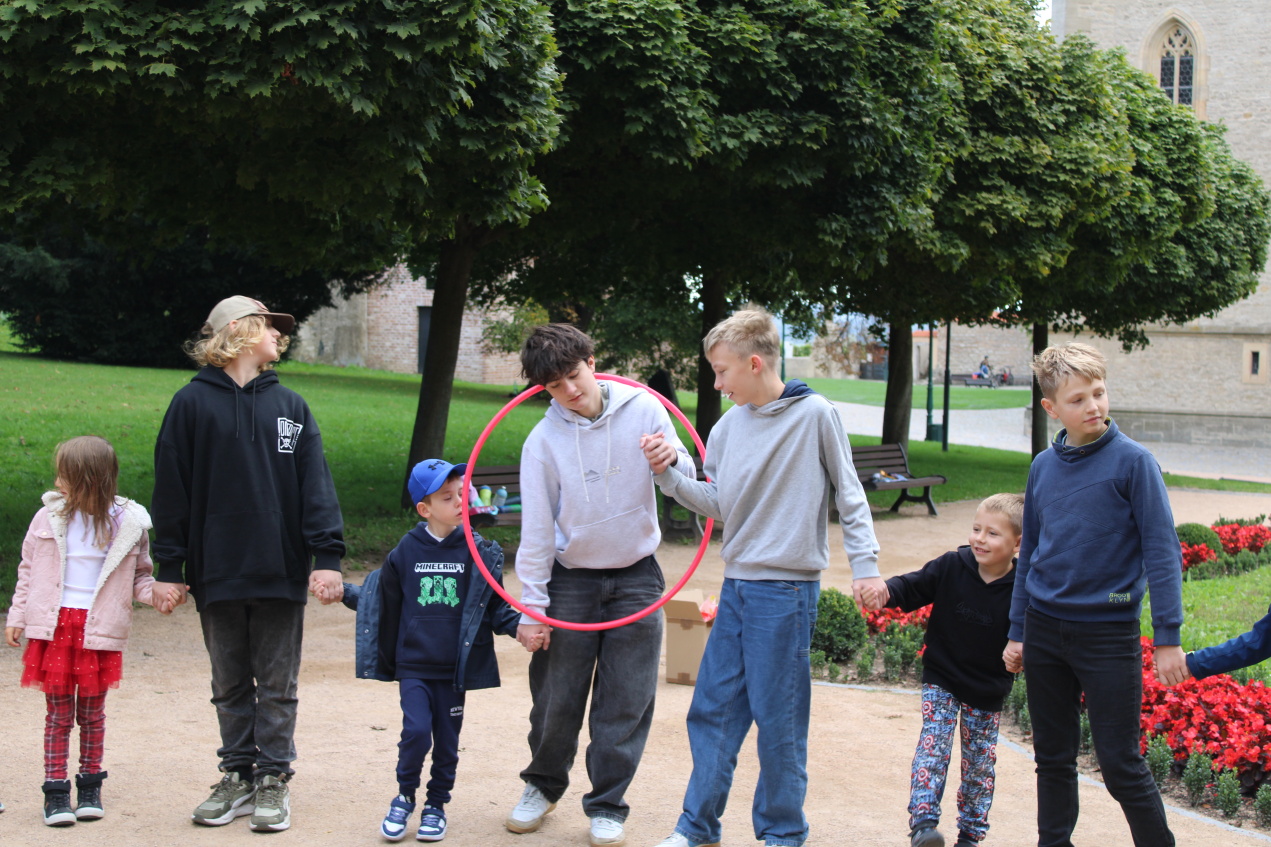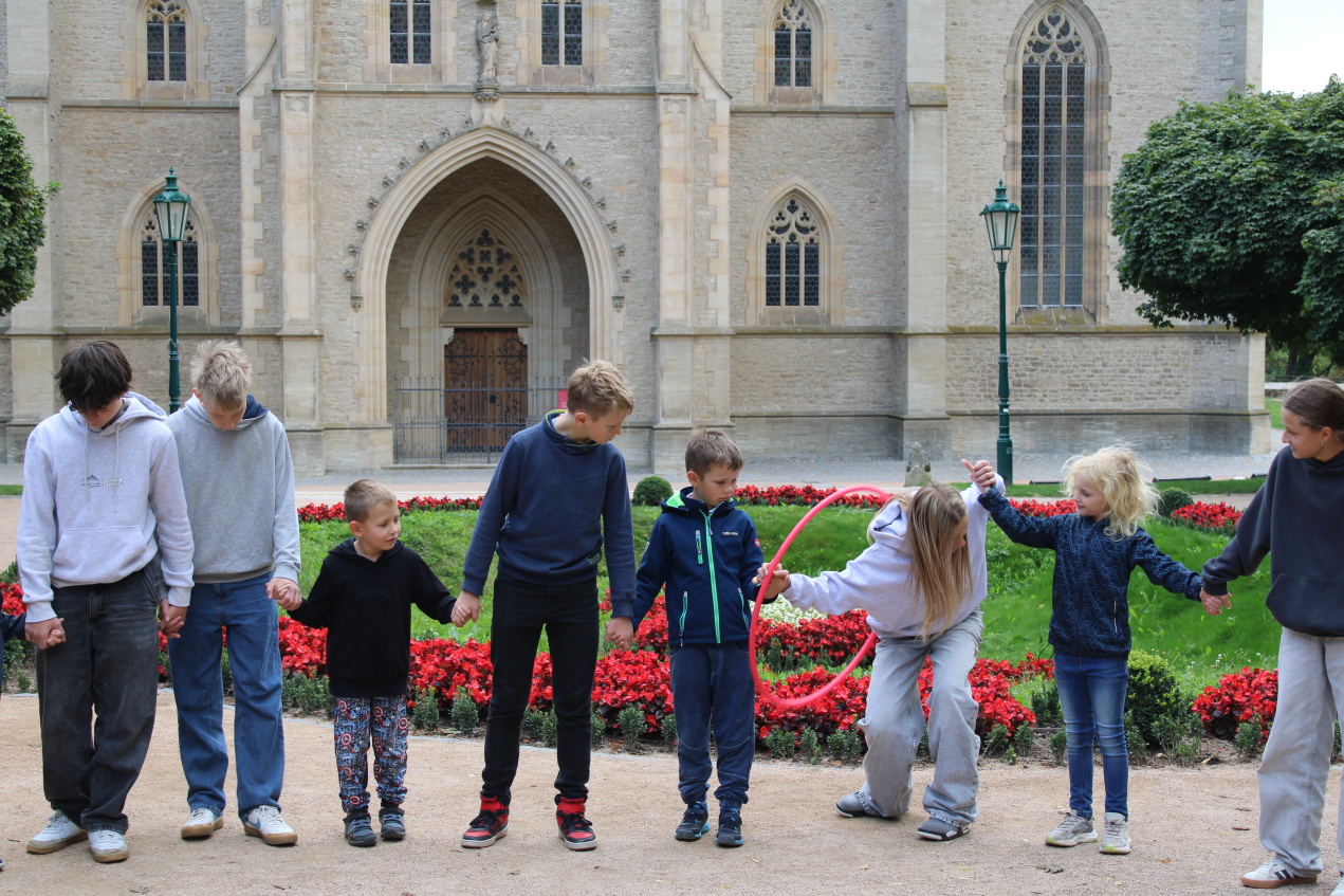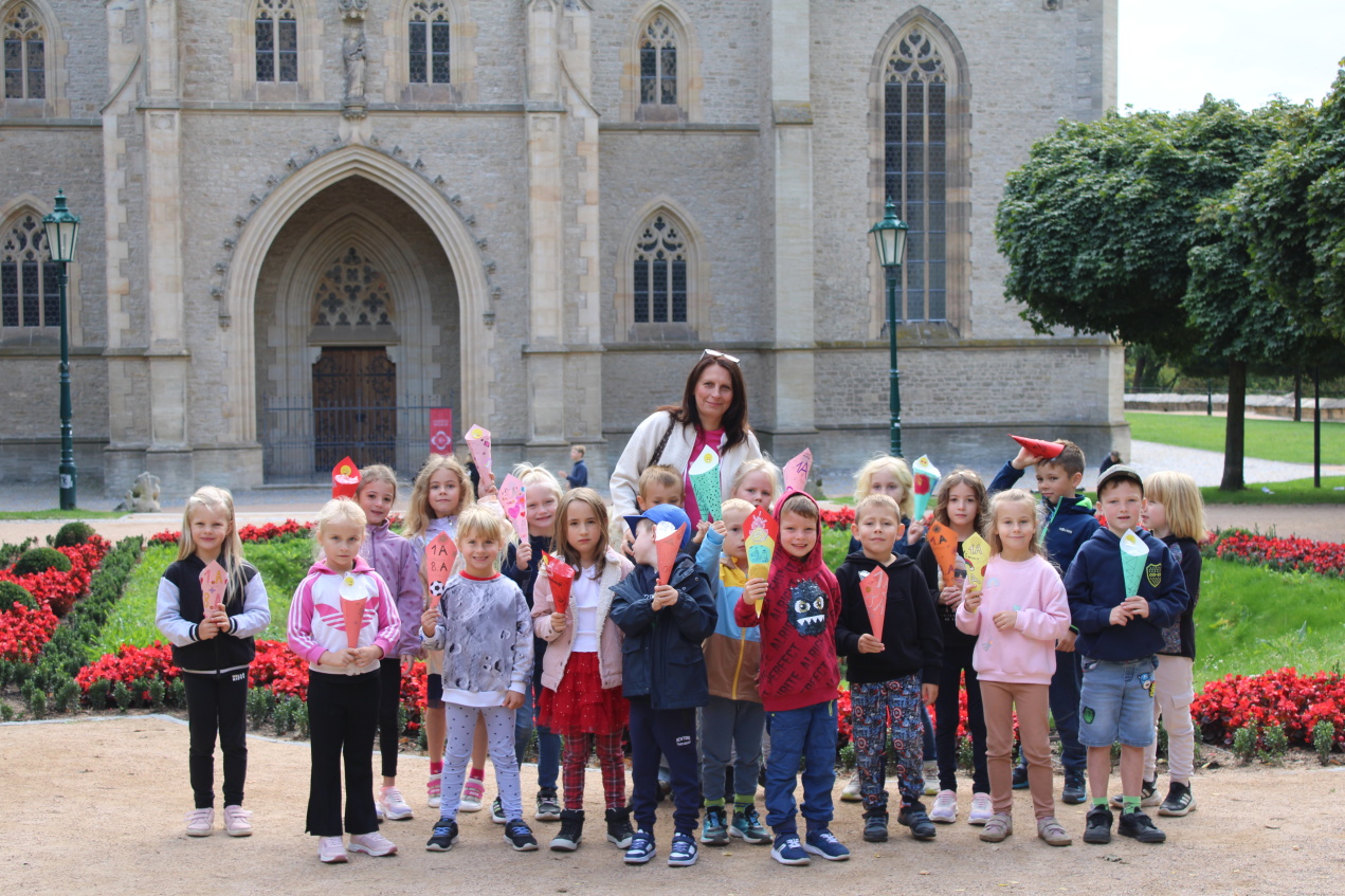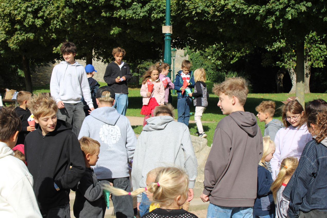 Ve středu 17. září zažili žáci VIII. A a I. A výjimečné dopoledne plné her, smíchu a radosti. Úžasnou kulisu pro společné setkání vytvořilo nejenom krásné prostředí u chrámu svaté Barbory, ale i sem tam slunečné počasí. Osmáci si pro své mladší spolužáky připravili pestrý program plný soutěží a zábavných úkolů – nechyběl hod na cíl, florbalový slalom, poznávačky, hádanky ani rýžování zlata. Každé stanoviště bylo promyšlené, nápadité a přizpůsobené věku prvňáčků. Nejenže si děti skvěle zasoutěžily, ale odnesly si i drobné odměny a hlavně spoustu zážitků. Velké poděkování patří osmákům nejen za přípravu a organizaci celé akce, ale především za jejich skvělý přístup, ochotu, trpělivost a laskavost, se kterou se malým kamarádům věnovali. Po hrách následovalo společné focení a loučení. Tak zase příště. Ahoj! Mgr. Šárka Dáňová, Mgr. Jana Němečková Růžičková