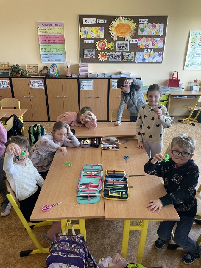 Druháci z béčka mají každý týden tandemovou výuku. Společně jsme se seznámili s programem: Příběhy Zipyho kamarádů, který pomáhá rozvíjet psychickou odolnost. Děti se prostřednictvím příběhů učí zvládat různé situace, se kterými se mohou v životě setkat. Při tvoření si žáci z chlupatých drátků vyrobili vlastní strašilky. V matematice jsme si procvičili násobilku pomocí pomůcky Logico Piccolo. Velkým zážitkem bylo focení a práce s QR kódy. Pod nimi se skrývala zábavná procvičení z angličtiny, prvouky i matematiky, takže si každý přišel na své. Na další společné hodiny se těšíme. Mgr. Martina Výborná