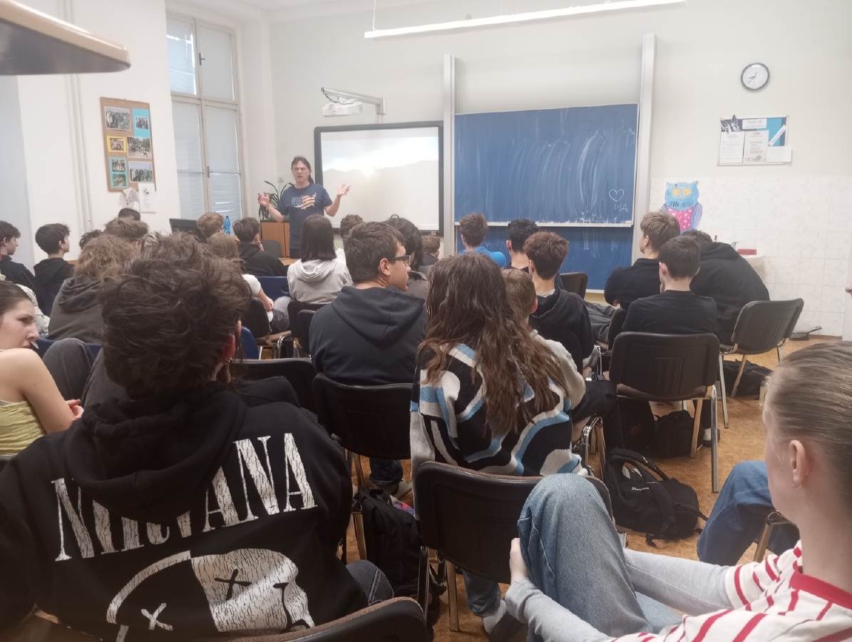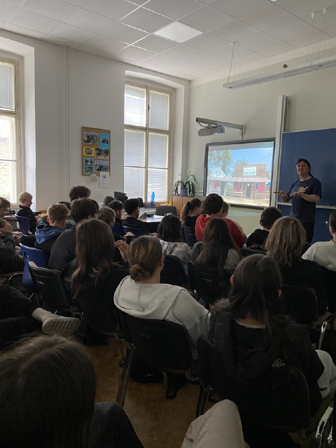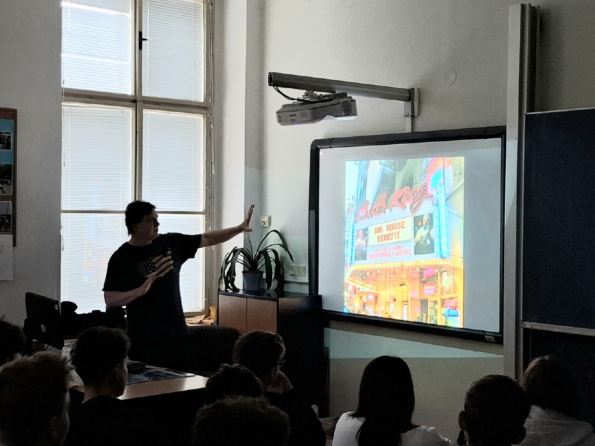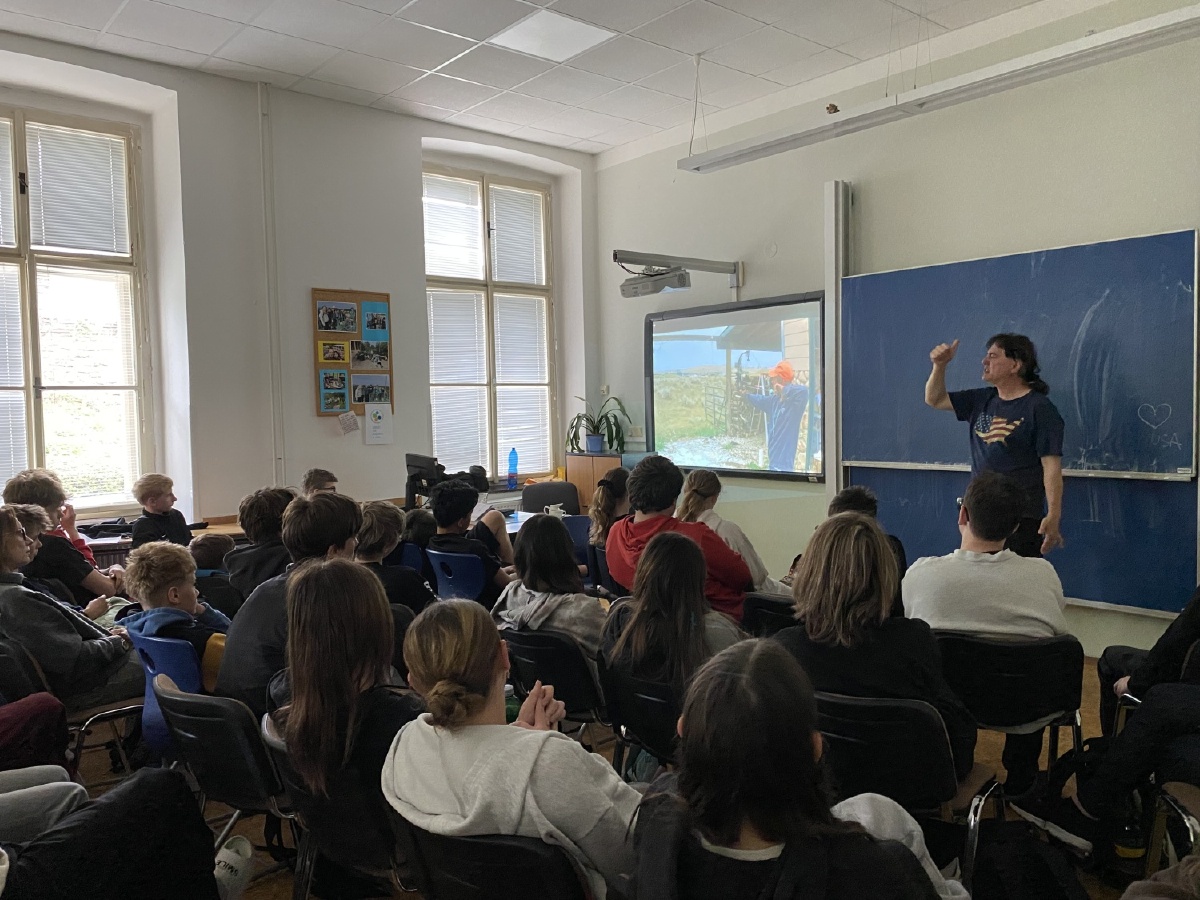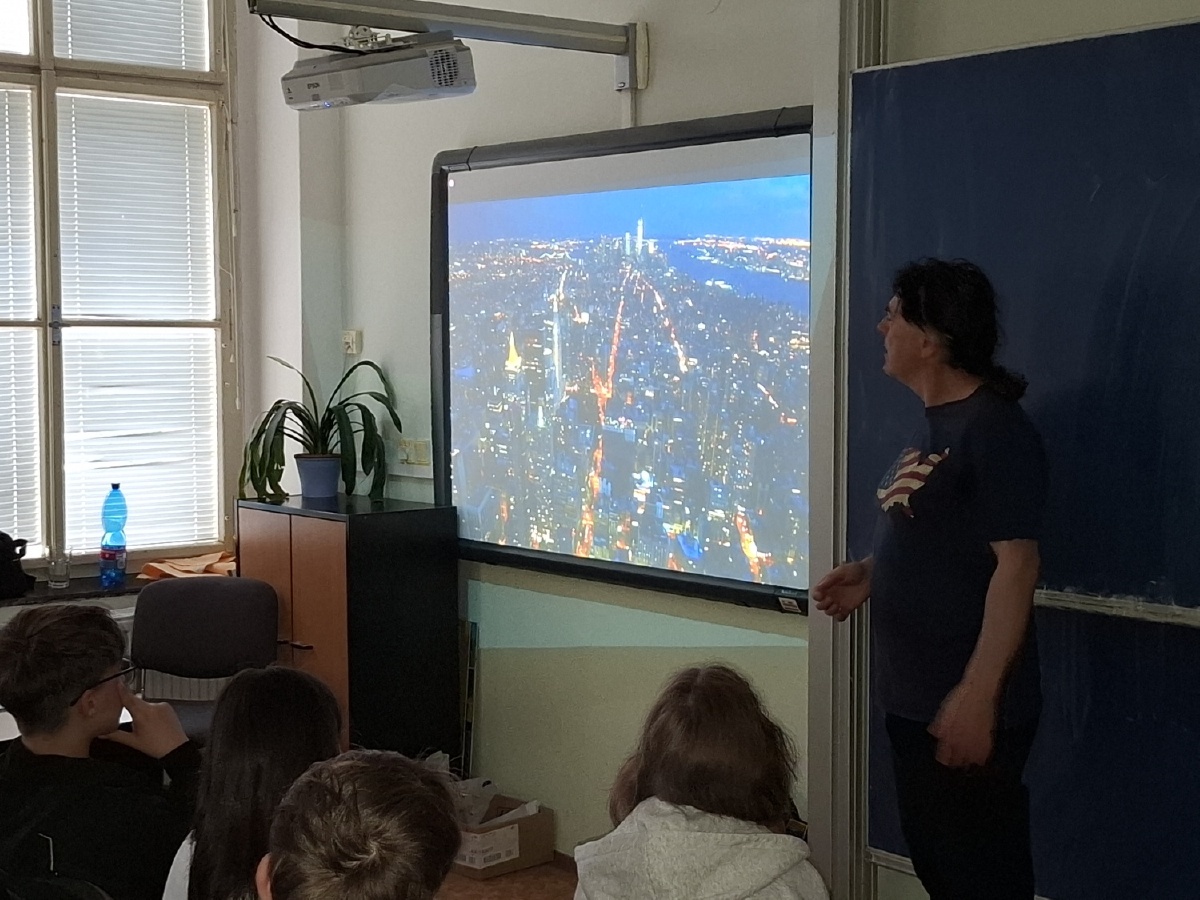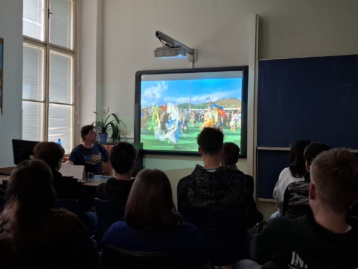 Ve čtvrtek 16. dubna proběhla přednáška Mgr. Karla Kocůrka v angličtině - poutavé vyprávění o jeho cestách po Spojených státech amerických. Akce proběhla v rámci podpory motivace ke studiu cizích jazyků a představovala vítané zpestření výuky. Žákům 2. stupně přinesla novou a cennou zkušenost - možnost zažít angličtinu jinak. Program nabídl pestrý pohled na tuto rozmanitou zemi. Źáci se seznámili nejen s turisticky známými městy, jako jsou New York nebo Chicago, ale také s méně obvyklými místy mimo hlavní turistické trasy. Velký ohlas vzbudily zejména záběry z indiánských rezervací, včetně ukázek tradičních rituálů, které běžní turisté nemají možnost spatřit. Nechyběly ani záběry a vyprávění o americké přírodě a zvířatech. Na závěr zbyl čas i na diskuzi, studenti se ptali a aktivně zapojovali, většina z nich se snažila mluvit anglicky. Podle reakcí se přednáška žákům líbila a odnesli si z ní zajímavou zkušenost. Mgr. Hana Votavová