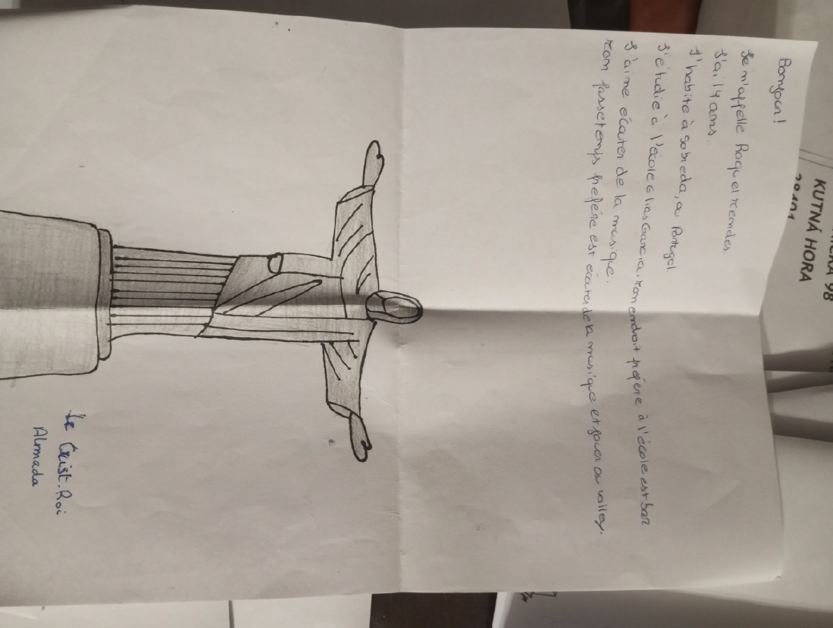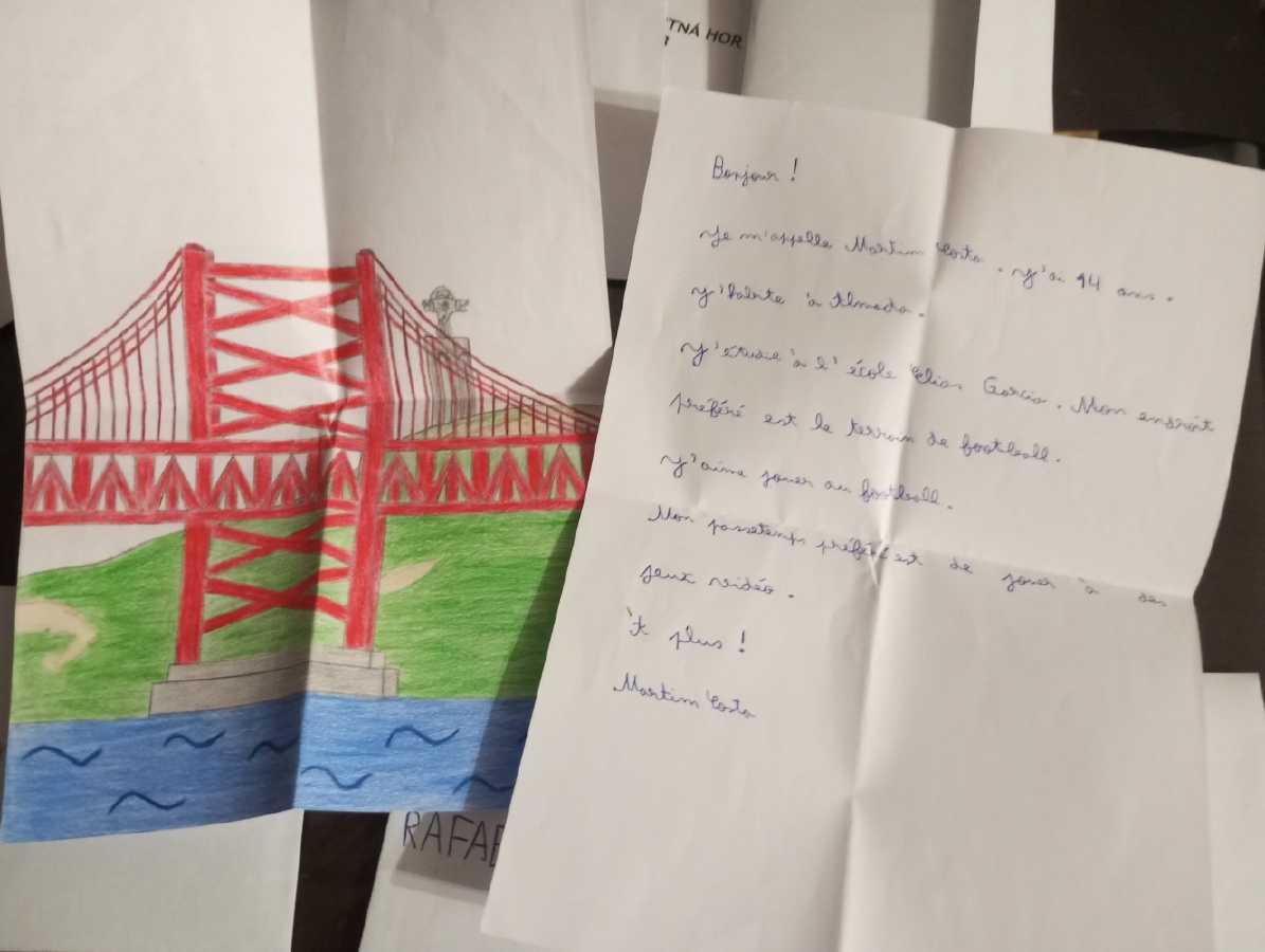 Náš projekt s portugalskou školou v Sobredě pokračuje. Právě jsme obdrželi velkou obálku obsahující individuální dopisy od portugalských žáků, kromě dopisů nám poslali také své krásné obrázky. Ve svých dopisech se podělili o informace o svém věku, oblíbeném místě ve škole, rodině a trávení volného času. Zjistili jsme, že drtivá většina chlapců jsou nadšenci do fotbalu, Zároveň jsme ale ocenili jejich velmi úhledné písmo. Jejich úroveň francouzštiny je srovnatelná s našimi žáky, s francouzštinou teprve začínají. Těšíme se na další výměnu dopisů a aktivit a na pokračování spolupráce s našimi portugalskými přáteli! Mgr. Hana Votavová