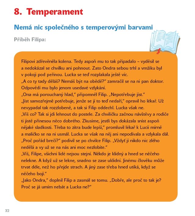 Zajímalo vás někdy, proč se někdy smějeme a jindy jsme smutní? Proč máme strach, vztek nebo trému? A co se vlastně děje v našem mozku, když přemýšlíme? Autorka chtěla dětem co nejpřitažlivější formou předat základní povědomí o psychologii, a to tak, aby byly informace srozumitelné i nejmladším čtenářům. Jednotlivé kapitoly se věnují například našemu vnímání, citům a pocitům, pozornosti, paměti, učení apod. Příběh chlapce Filipa, který se ocitne v nemocnici po úrazu hlavy, slouží jako rámec pro vysvětlení základních psychologických pojmů. Čtenáře při četbě provází mozek Filipa, který zábavnou formou doplňuje příslušné odborné informace. Kniha je určená především dětem školního věku, ale ocení ji i jejich rodiče a pedagogové.