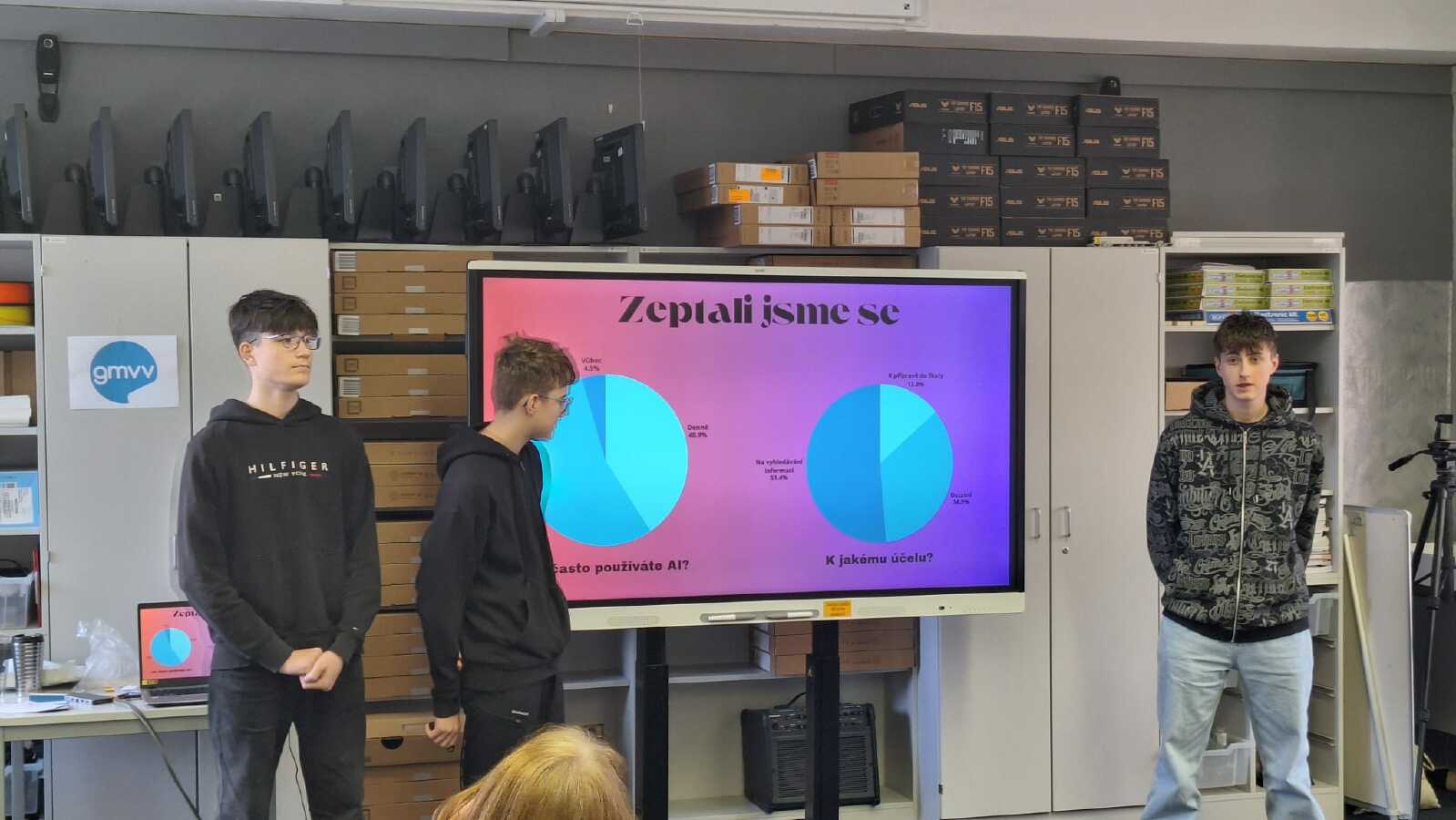 Velmi dobře si vedly také naše chlapecké týmy ve složení Jan Bartoš, Jáchym Jelínek a Antonín Zubec, Jakub Pospíšil, Adam Závada. Přestože se tentokrát mezi prvními třemi neumístily, předvedly kvalitní výkony a získaly cenné zkušenosti do dalších ročníků soutěže. Všem soutěžícím patří velké poděkování za jejich práci a nasazení, za skvělou reprezentaci školy a za odvahu postavit se před porotu i publikum. Děvčatům srdečně gratulujeme k vítězství a budeme jim držet palce na květnovém Grandfinále v Mladé Boleslavi. Mgr. Monika Krejčová