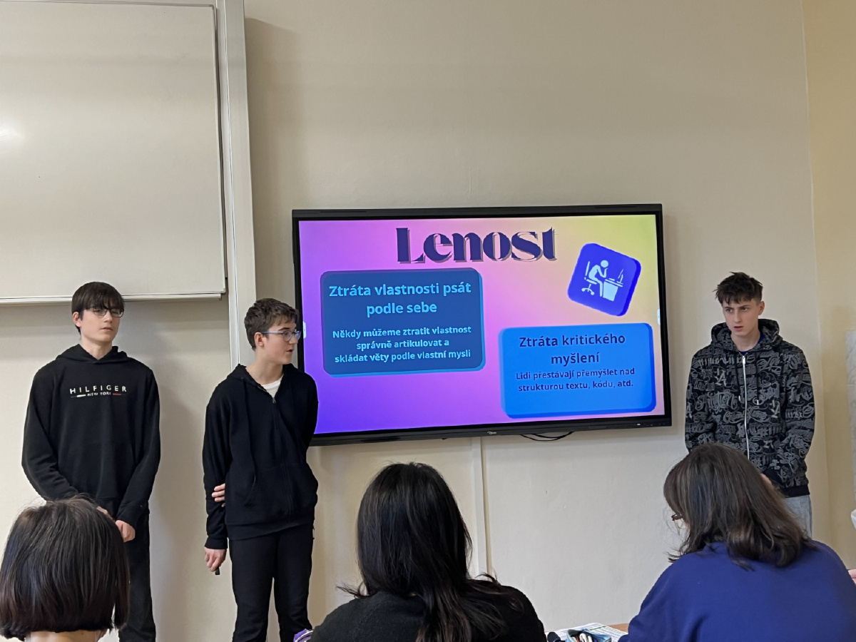 V pondělí 23. února proběhlo na naší škole nominační kolo soutěže Prezentiáda. Zapojilo se celkem pět týmů, které během pouhých několika týdnů intenzivních příprav vytvořily originální prezentace na letošní témata „Na hraně“ a „Kapka v moři“. Všechny týmy pracovaly s velkým nasazením. Čas na přípravu byl poměrně krátký, žáci trénovali nejen ve škole, ale i doma. Zaměřili se na obsah, vizuální zpracování i samotný přednes. Porota ocenila jejich zodpovědný přístup, kreativitu, vzájemnou spolupráci i snahu zvládnout trému při veřejném vystoupení.