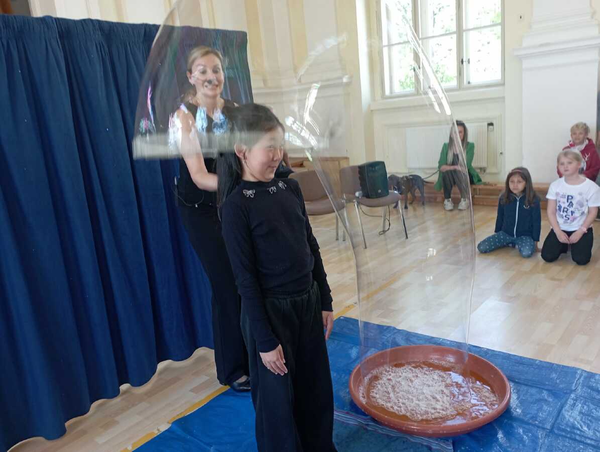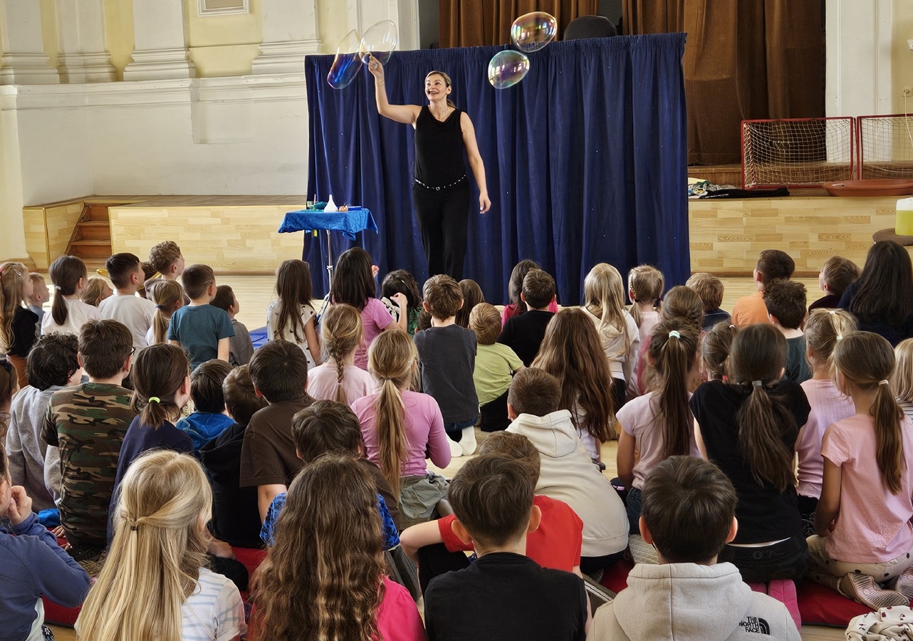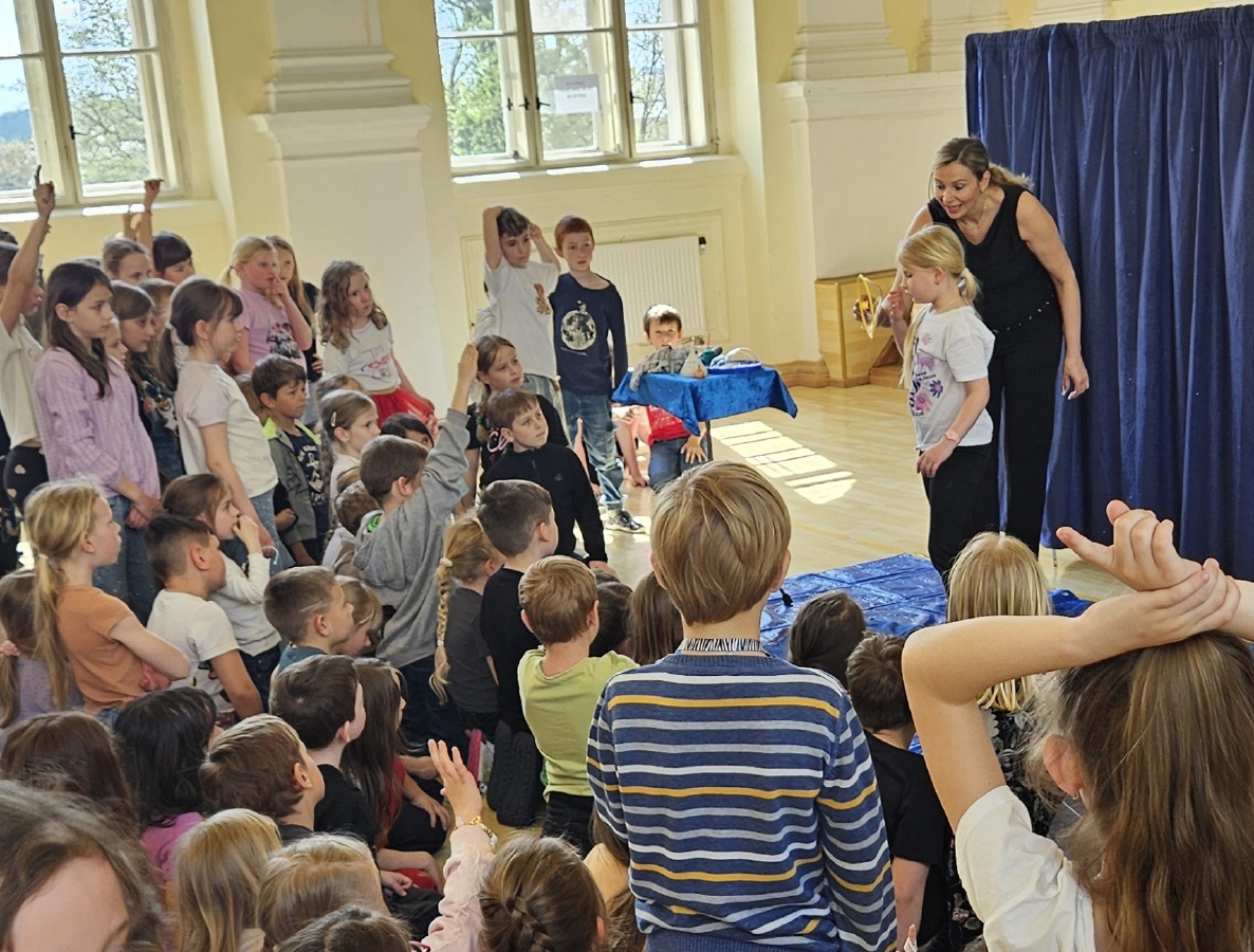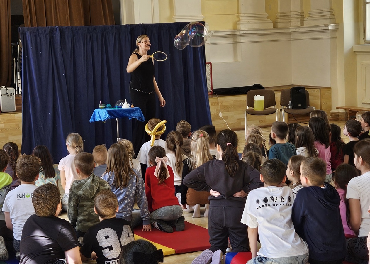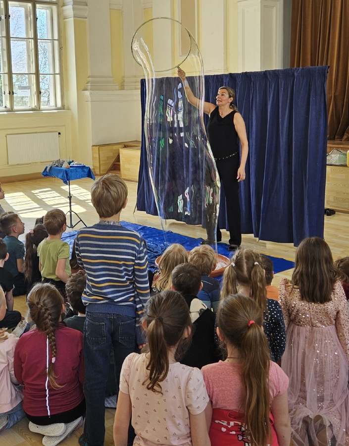 Ve středu 15.dubna nás navštívila kouzelnice Ingrid se svojí bublinovou show. Představení plné žonglování, cvičení s pejskem, kreací s kruhy a kouzelnickým překvapením děti napjatě sledovaly a do vystoupení se i aktivně zapojily. Vyvrcholením představení byla bublinová show. Děti okouzlily bubliny jak velké, tak malé. Nakonec je potěšilo, když dostaly možnost nechat se obklopit velkou bublinou.