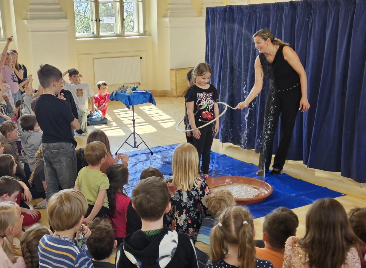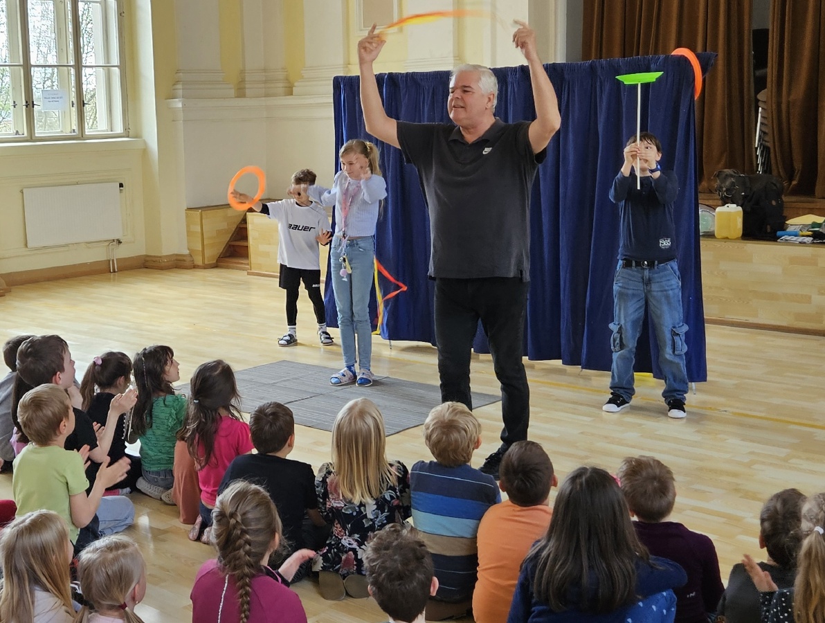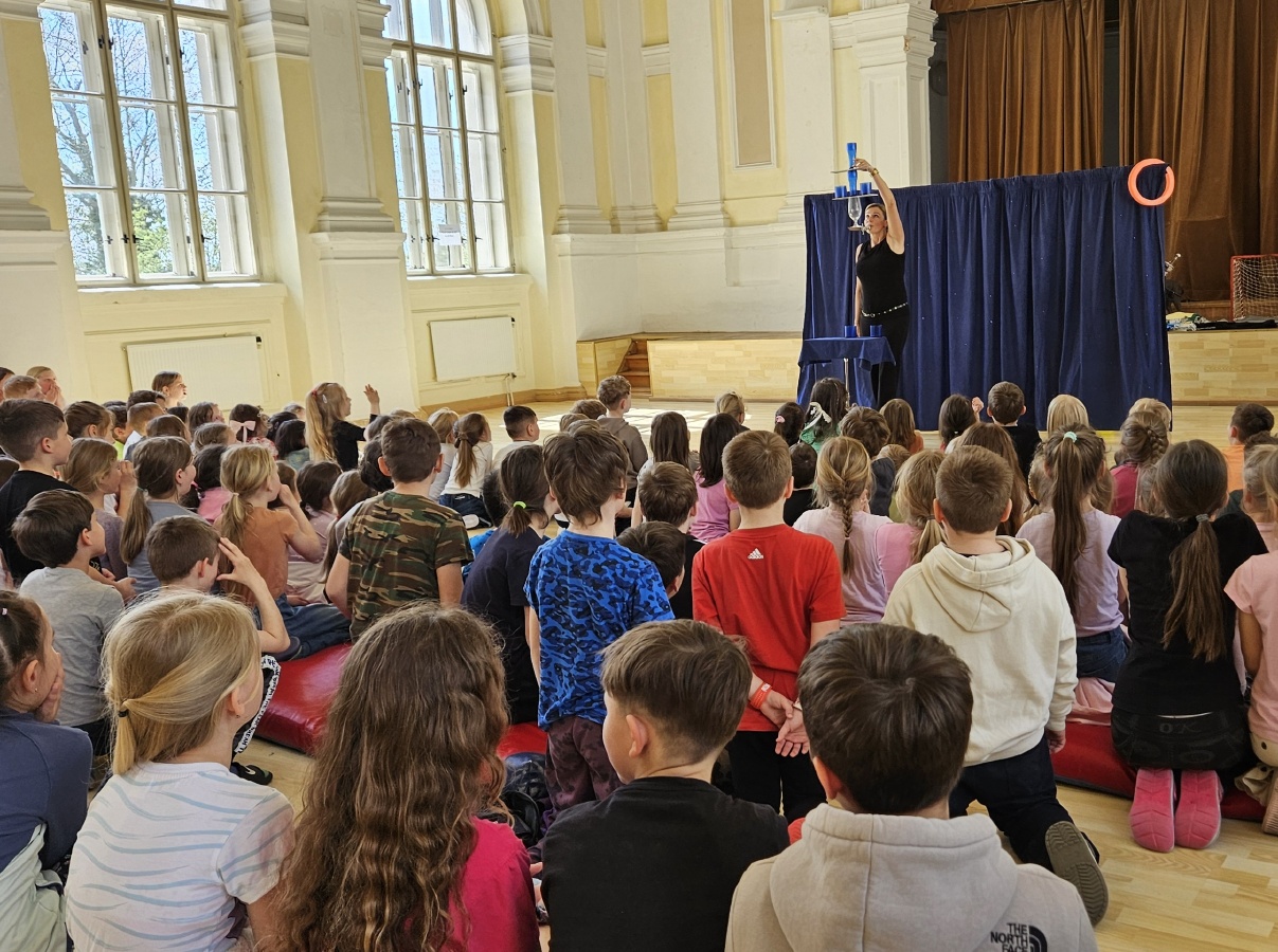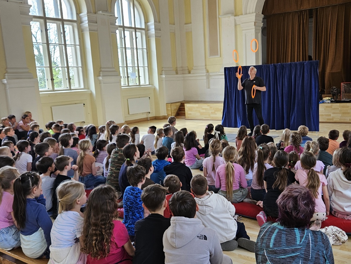 Ve středu 15.dubna nás navštívila kouzelnice Ingrid se svojí bublinovou show. Představení plné žonglování, cvičení s pejskem, kreací s kruhy a kouzelnickým překvapením děti napjatě sledovaly a do vystoupení se i aktivně zapojily. Vyvrcholením představení byla bublinová show. Děti okouzlily bubliny jak velké, tak malé. Nakonec je potěšilo, když dostaly možnost nechat se obklopit velkou bublinou.