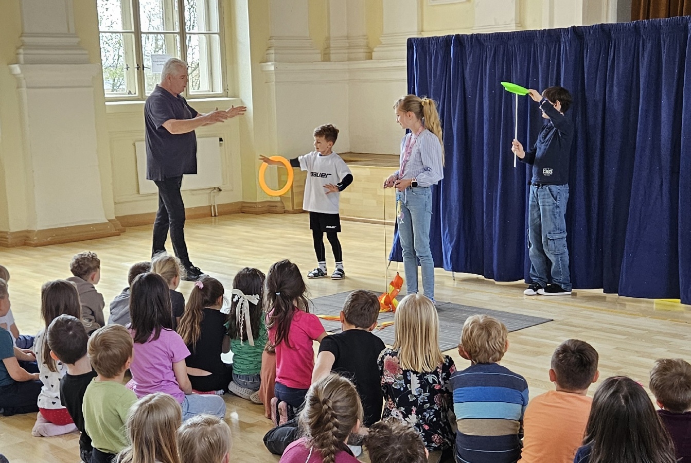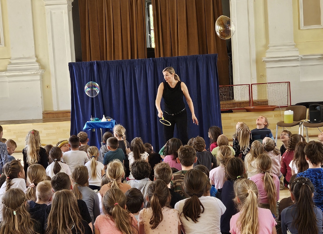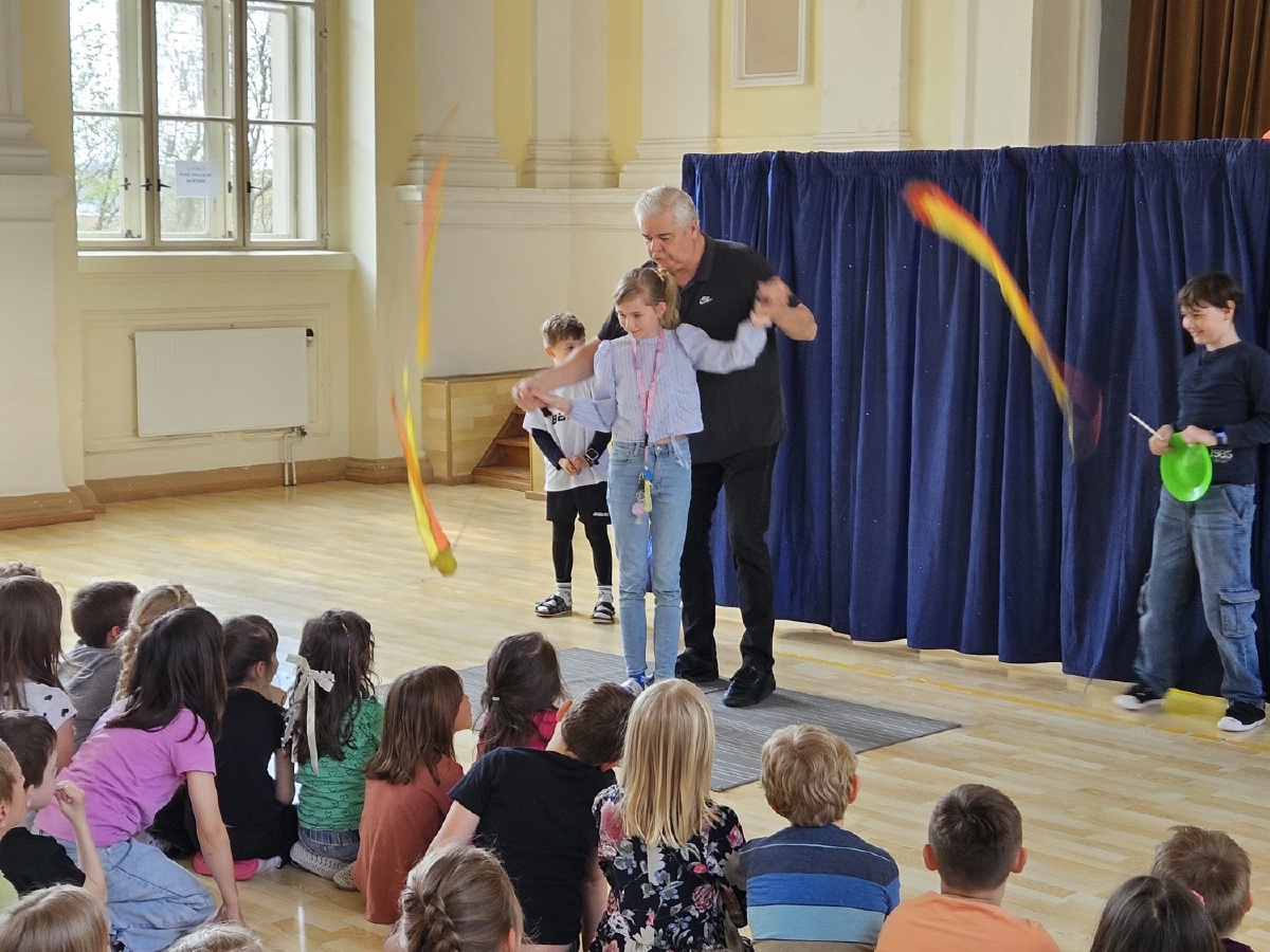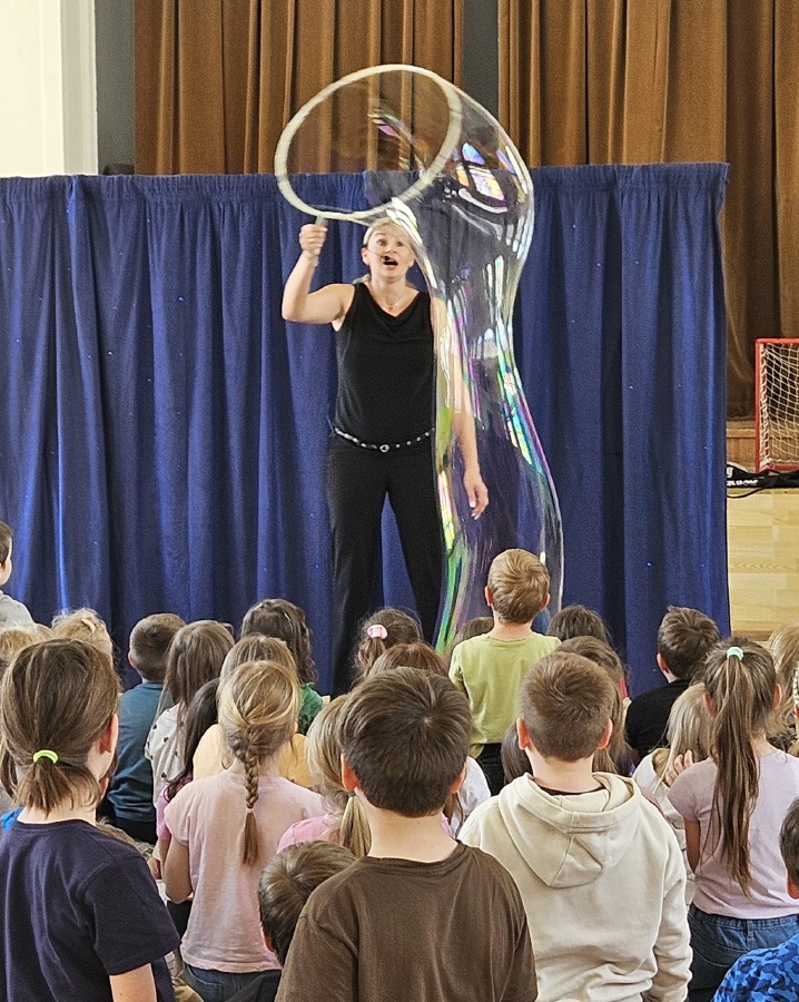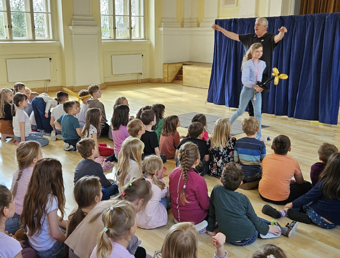 Ve středu 15.dubna nás navštívila kouzelnice Ingrid se svojí bublinovou show. Představení plné žonglování, cvičení s pejskem, kreací s kruhy a kouzelnickým překvapením děti napjatě sledovaly a do vystoupení se i aktivně zapojily. Vyvrcholením představení byla bublinová show. Děti okouzlily bubliny jak velké, tak malé. Nakonec je potěšilo, když dostaly možnost nechat se obklopit velkou bublinou.