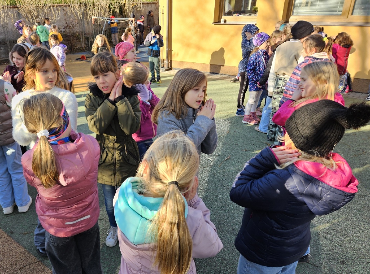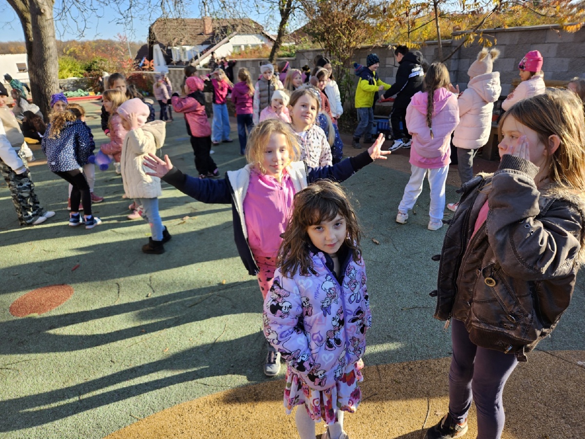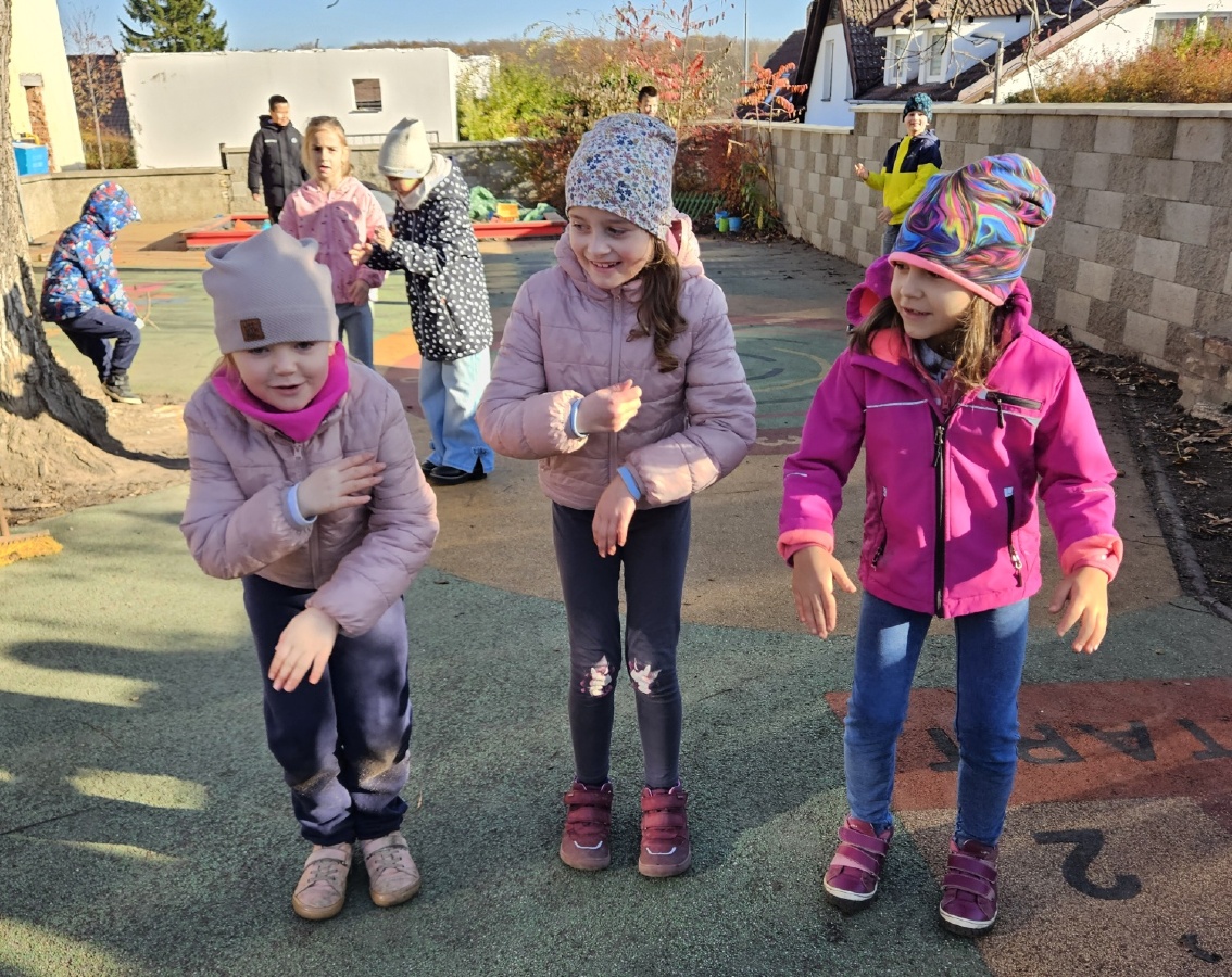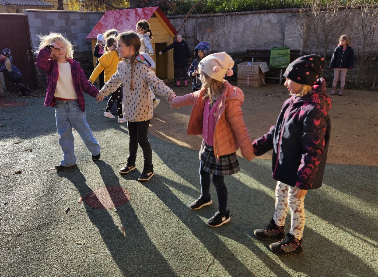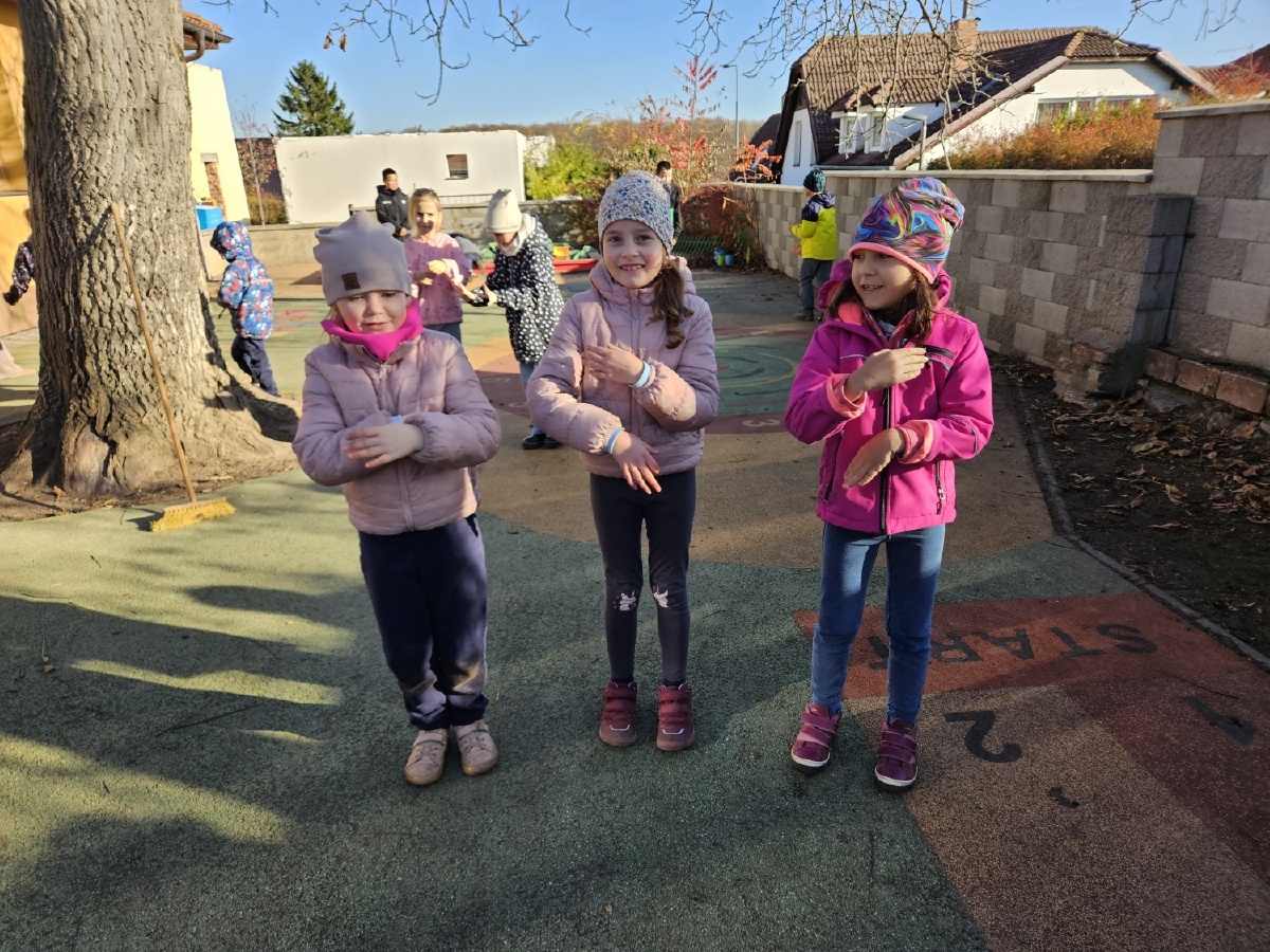 První listopadový pátek se konalo třetí celodružinové shromáždění v tomto školním roce. Vyhlásili jsme vítěze říjnové výtvarné soutěže na téma houba a zahájili novou, tentokrát budeme malovat anděly. Pověděli jsme si pravidla chování a dodržování bepečnosti, připomněli si pravidelný úklid hraček i svého oblečení....A už tradičně jsme zakončili naše setkání na hřišti za družinou oblíbenou diskotékou.