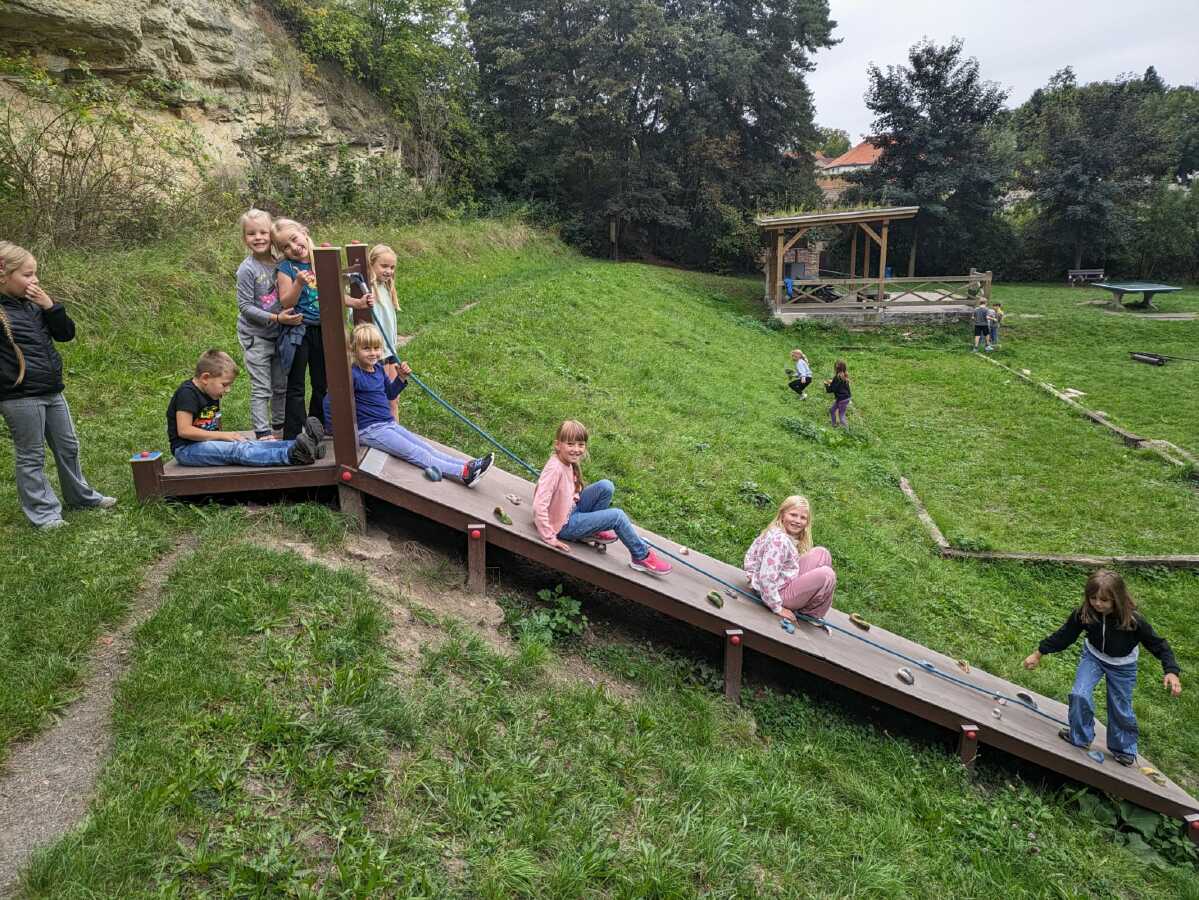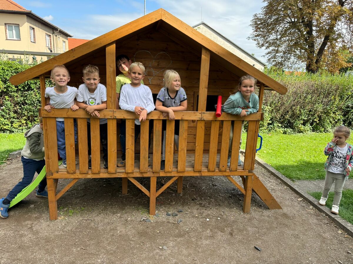 V průběhu celého měsíce chodíme během vycházek na multifunkční dětská hřiště v okolí školy nebo do přírody či nedalekého parku. Využili jsme příznivého počasí, které naštěstí trvalo skoro celý měsíc.