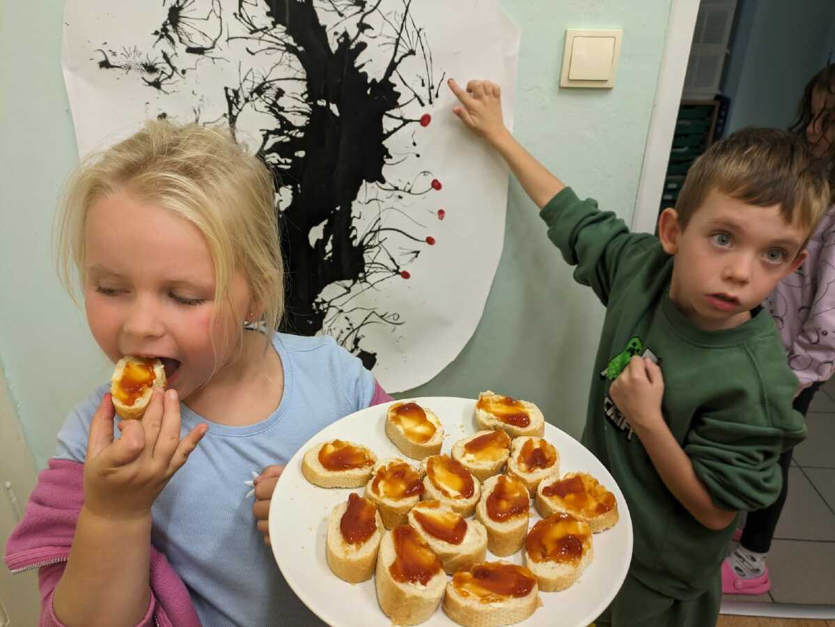 Přišel podzim a chřipka s rýmou obcházejí naši školu. V oddělení Krtečků si proto udělali Šípkový den, aby si připomněli, jaké vitamíny šípek obsahuje a jak můžeme bojovat proti nemocem a nachlazení. Ochutnali šípkový džem, uvařili si šípkový časj a namalovali šípky na větvičku, kterou vytvořili rozfoukáním tuší.
