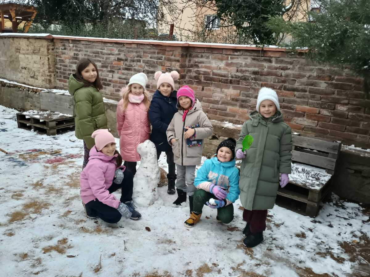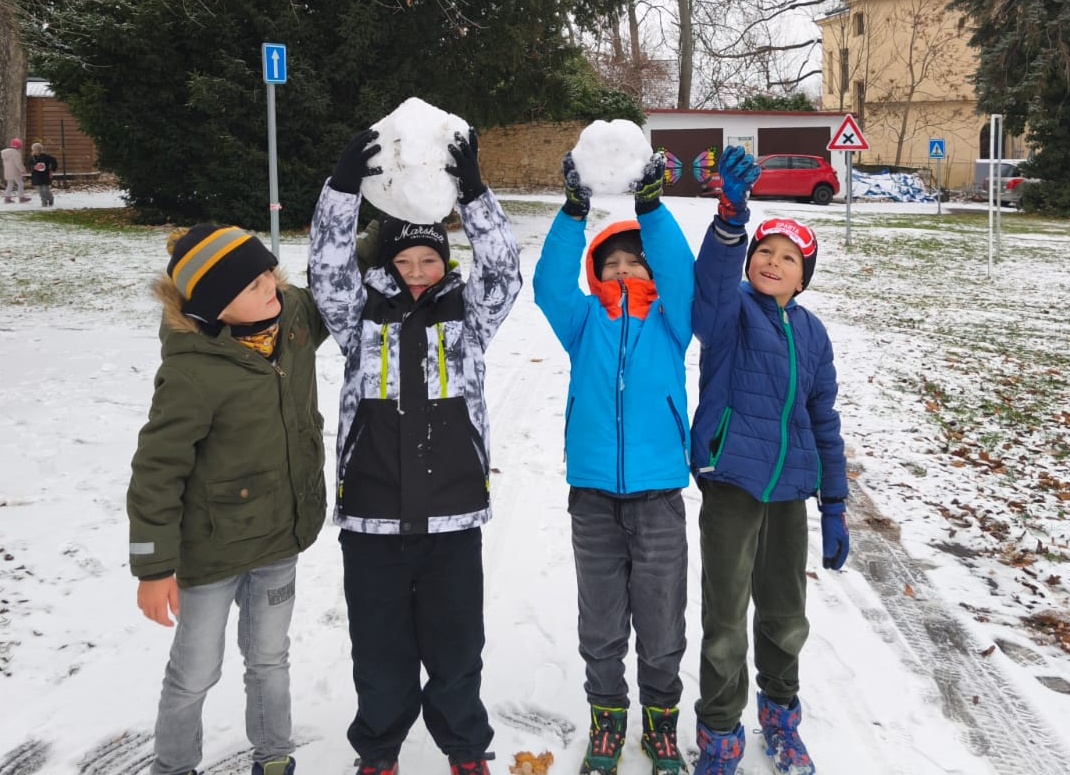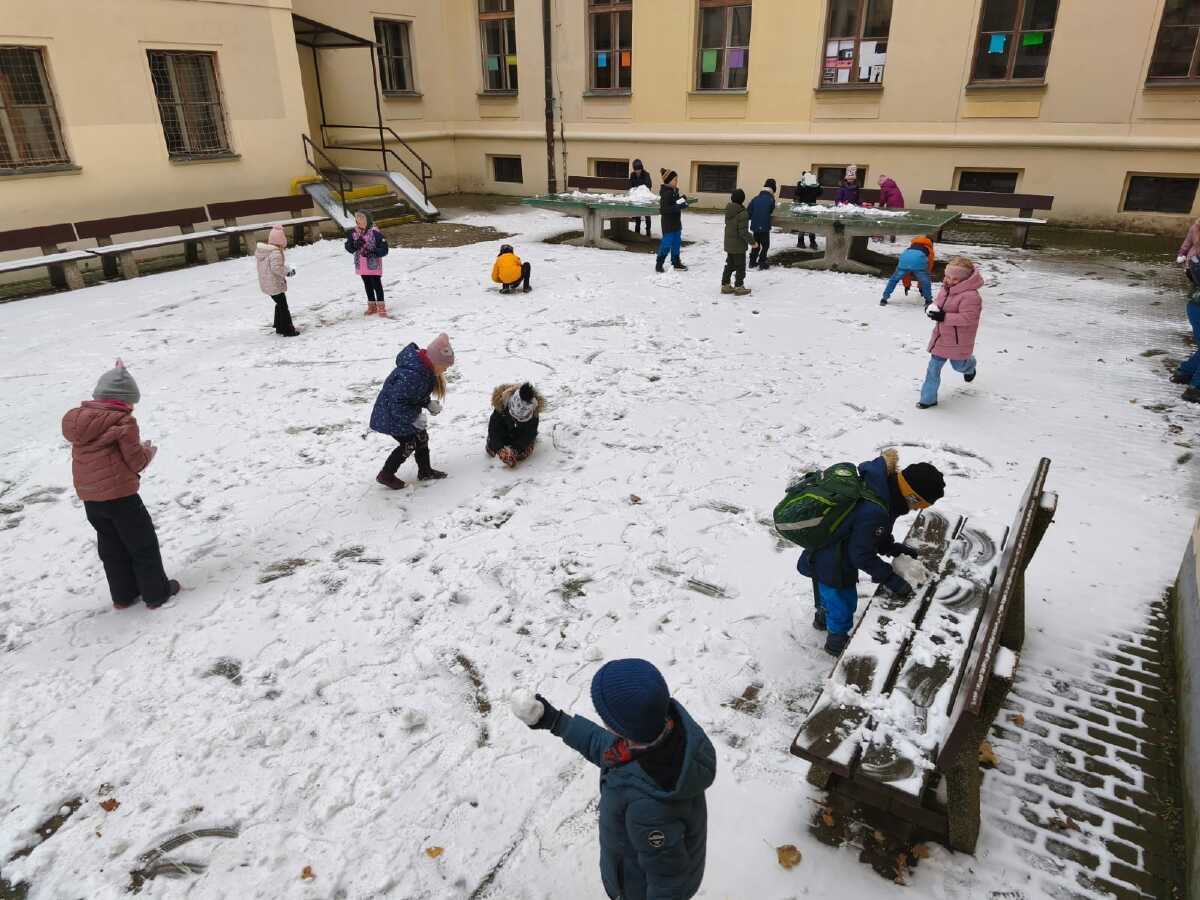 Dnes jsme si první sníh letošního roku ve školní družině opravdu užíváme, jak ke sněhovým hrátkám na hřišti, tak na vycházce. Se sněhem je opravdu spoustu zábavy a přejeme si, aby sníh vydržel co nejdéle.