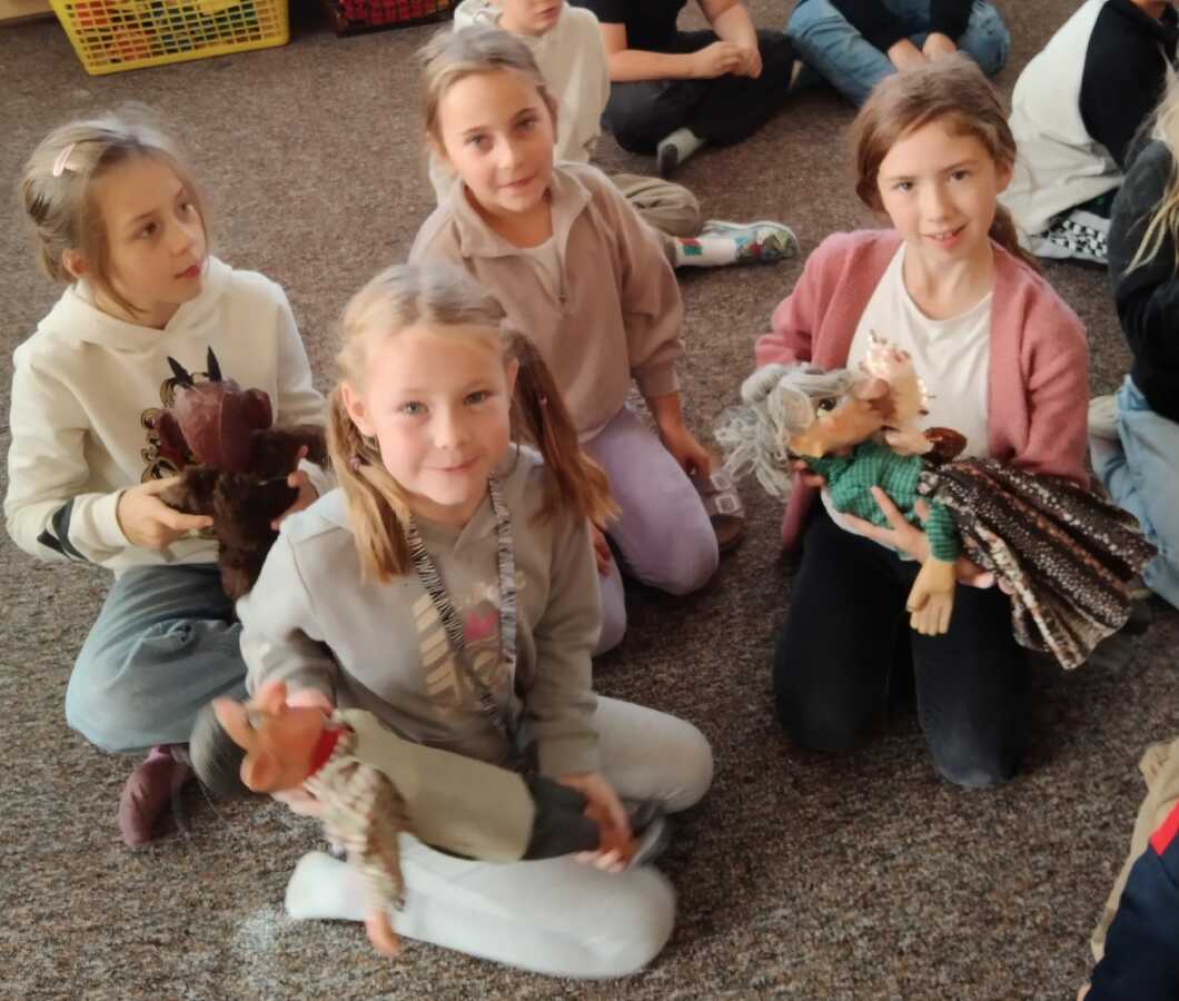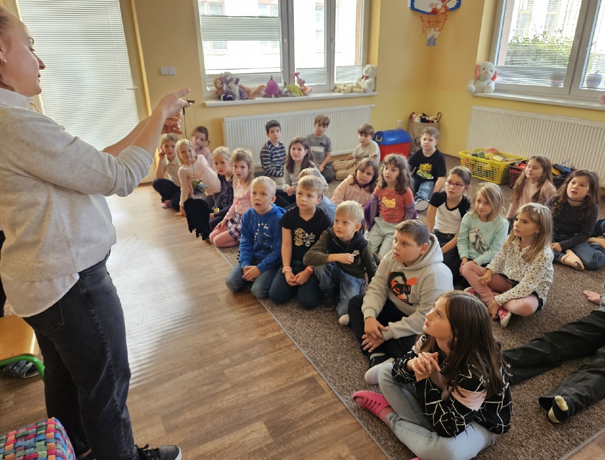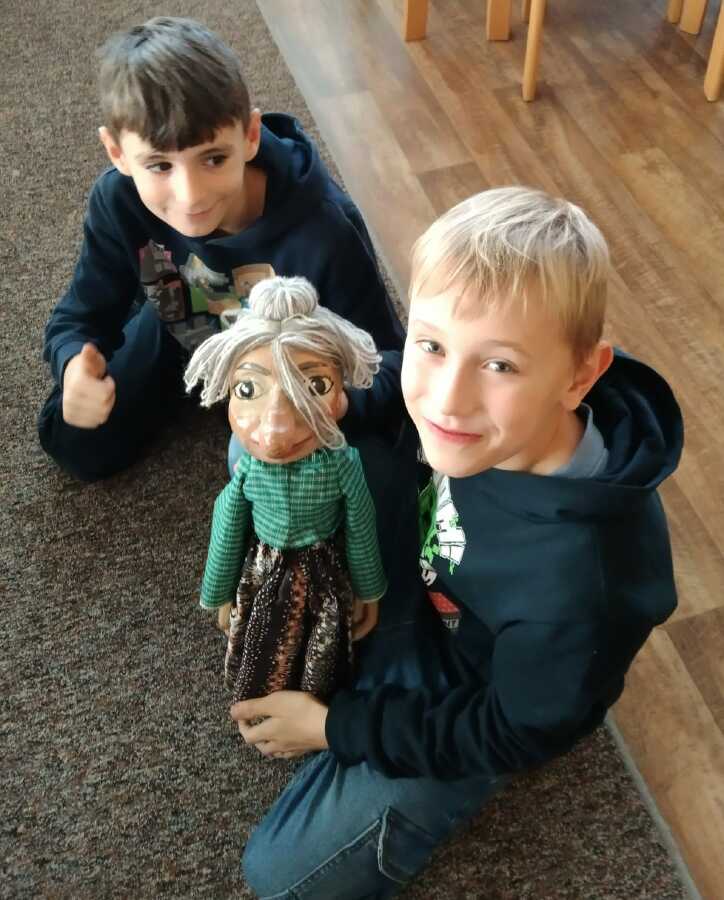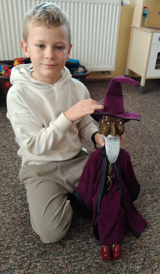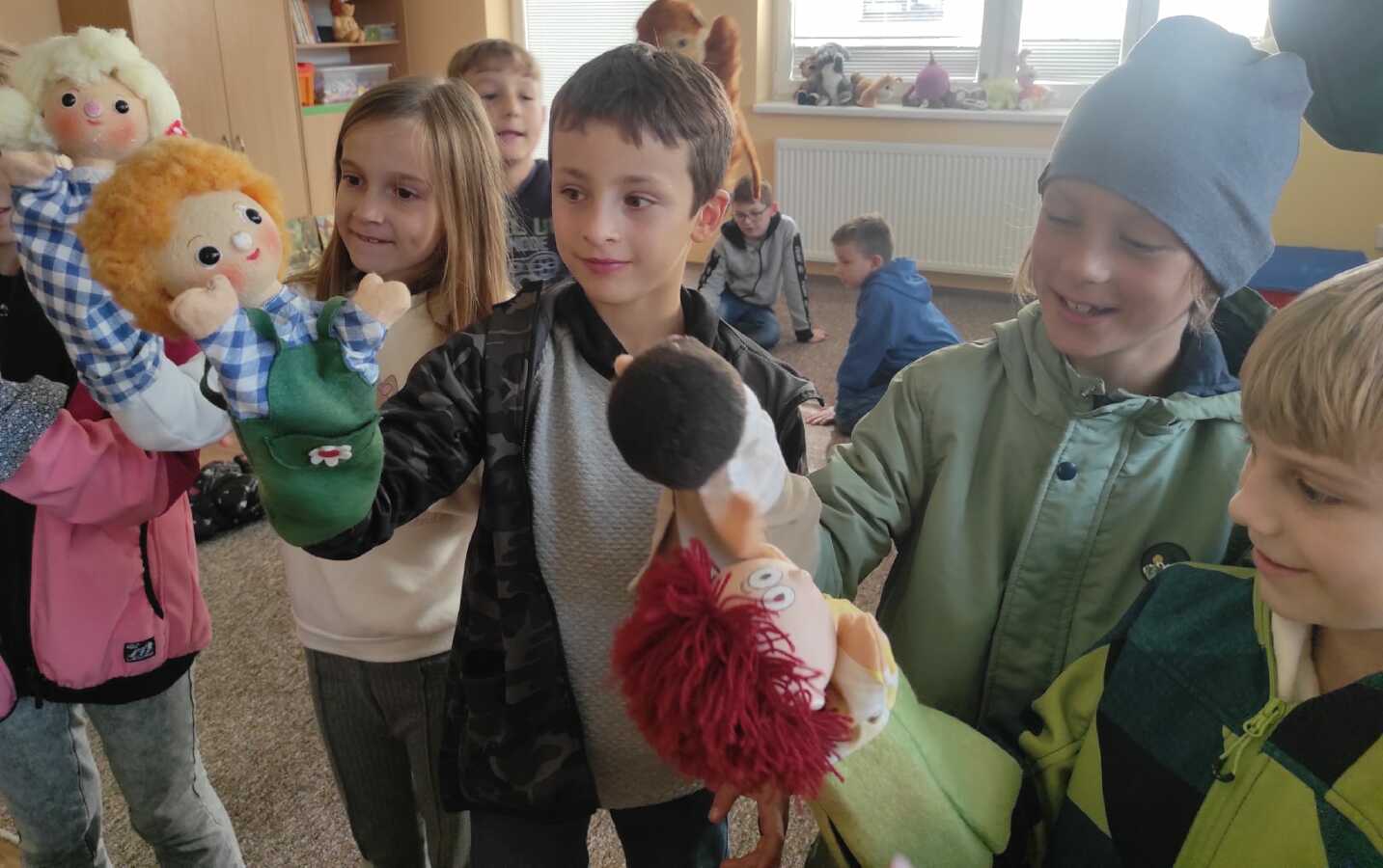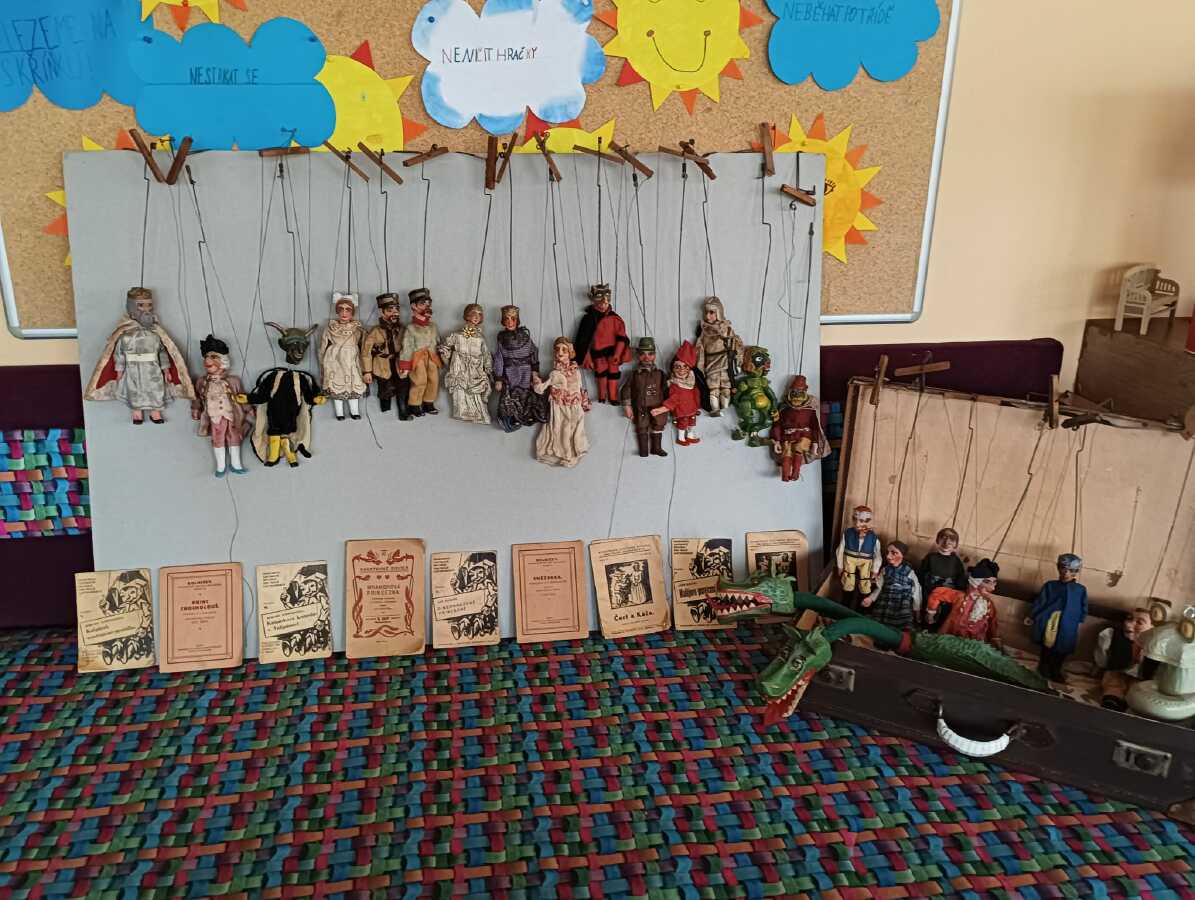 V pondělí 13.října zavítaly do školní družiny loutky ze sbírky naší paní vychovatelky z oddělení Včeliček. Děti se pozdravily s drakem, černokněžníkem, čerty a dalšími postavičkami. Vyzkoušely si, jak se loutky ovládají a také se dozvěděly, z jakých materiálů se vyrábí a z jakých částí se skládají i jaká mají jména. Z rozzářených dětských tváří bylo patrné, že se jim obdivuhodná sbírka moc líbila a každý z nich si moc rád loutku "pochoval".