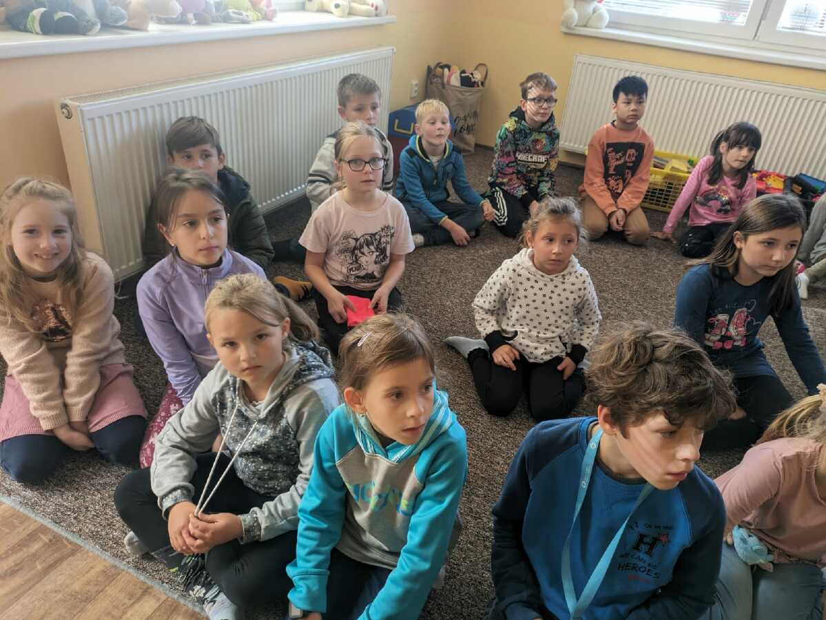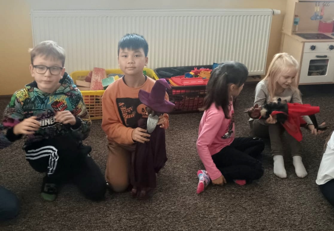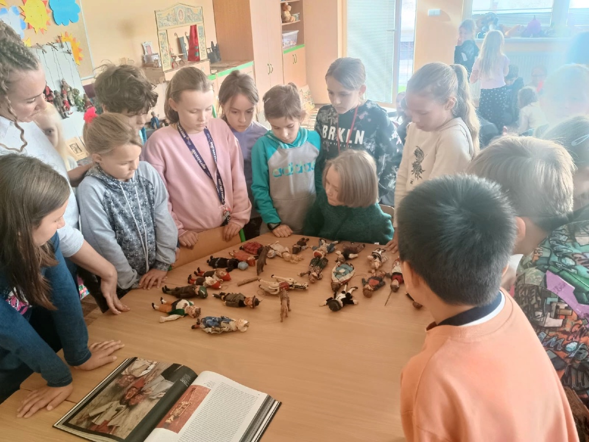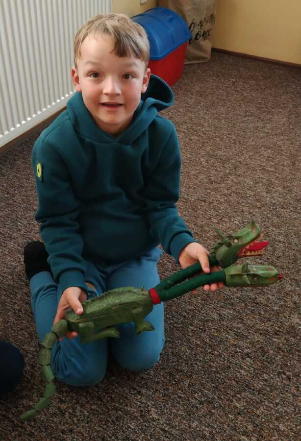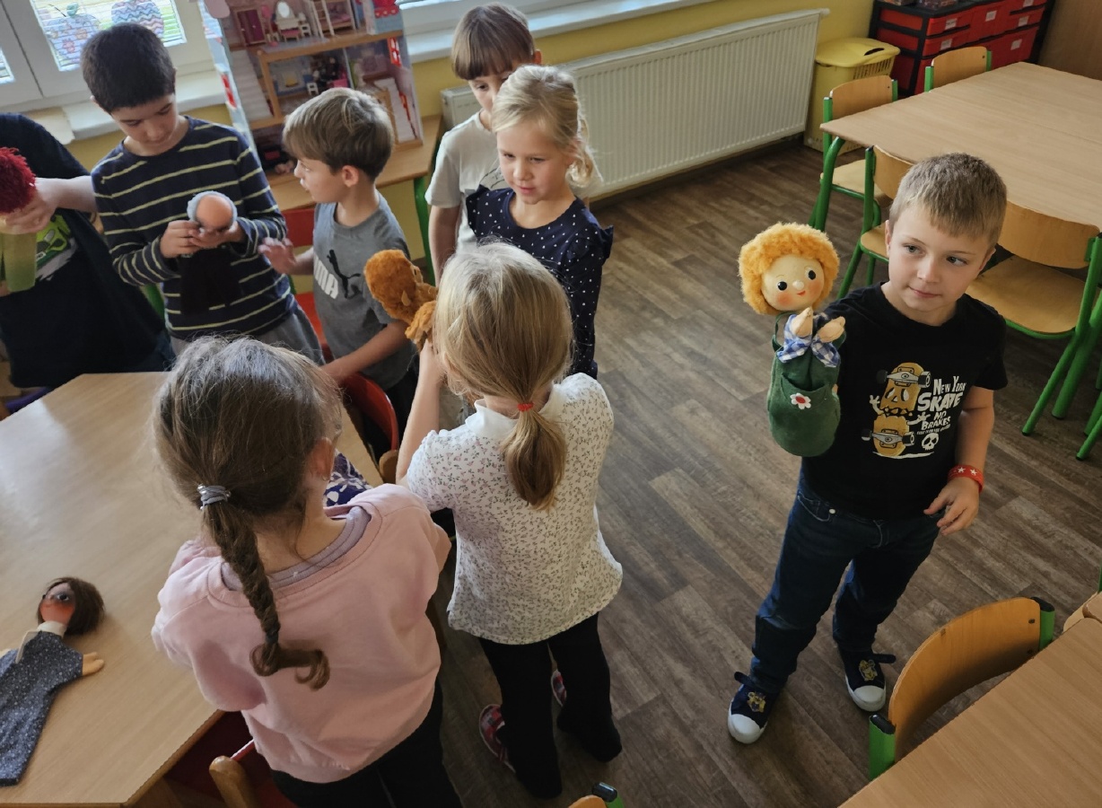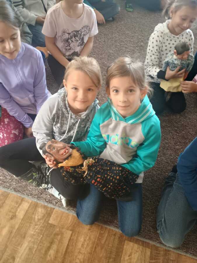 V pondělí 13.října zavítaly do školní družiny loutky ze sbírky naší paní vychovatelky z oddělení Včeliček. Děti se pozdravily s drakem, černokněžníkem, čerty a dalšími postavičkami. Vyzkoušely si, jak se loutky ovládají a také se dozvěděly, z jakých materiálů se vyrábí a z jakých částí se skládají i jaká mají jména. Z rozzářených dětských tváří bylo patrné, že se jim obdivuhodná sbírka moc líbila a každý z nich si moc rád loutku "pochoval".